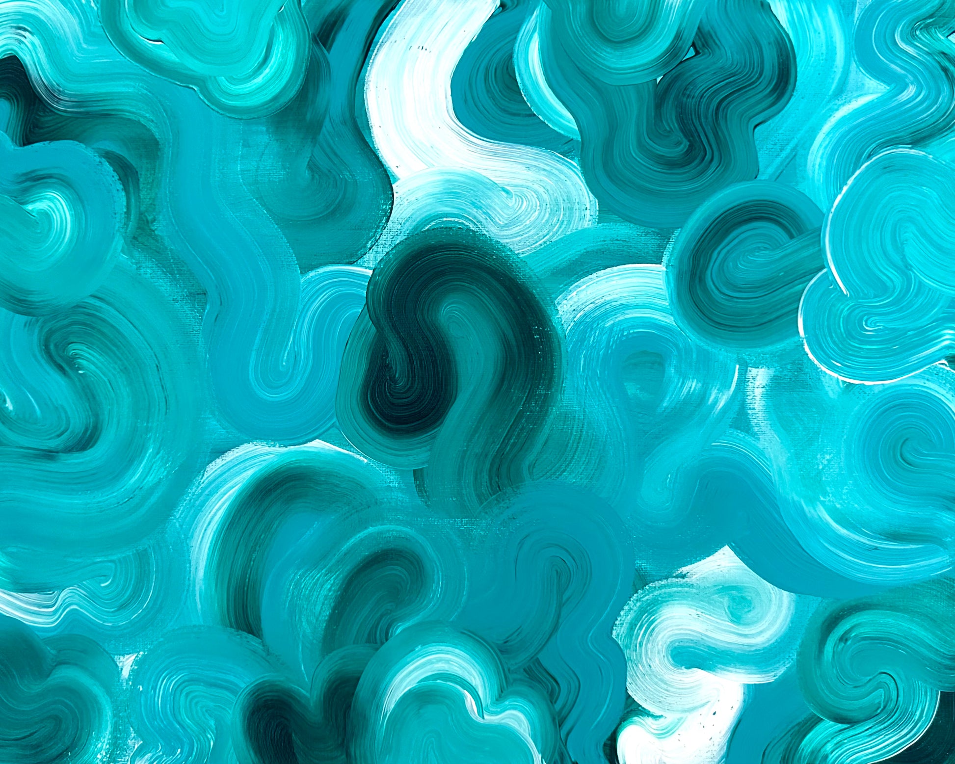 A 16x20-inch acrylic on canvas, "OPHELIA" is inspired by Taylor Swift's "The Fate of Ophelia," where through love, one is saved from an unfortunate fate. This piece blends greens and blues to symbolize growing pains and new beginnings.